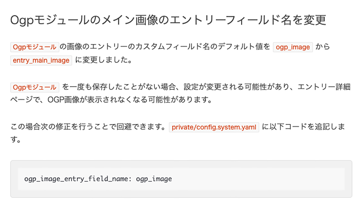 Ogpモジュールの画像のエントリーのカスタムフィールド名のデフォルト値を ogp_image から entry_main_image に変更しました。