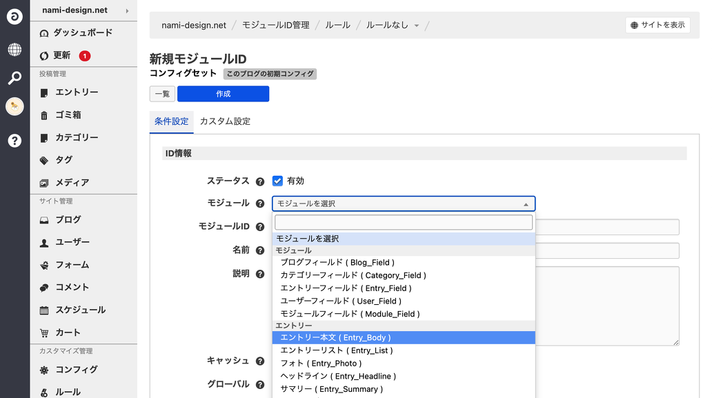 ちなみに管理ページのモジュールIDの箇所でモジュールの管理ができるようです。