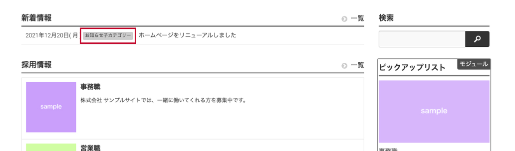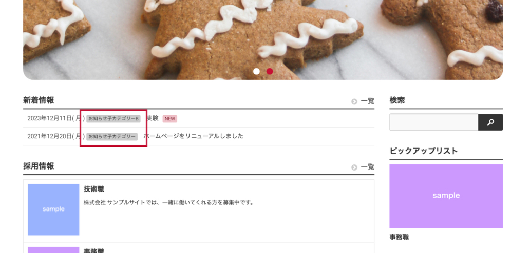 ページを見てみると、ちゃんと子カテゴリーの名前が表示されていました。